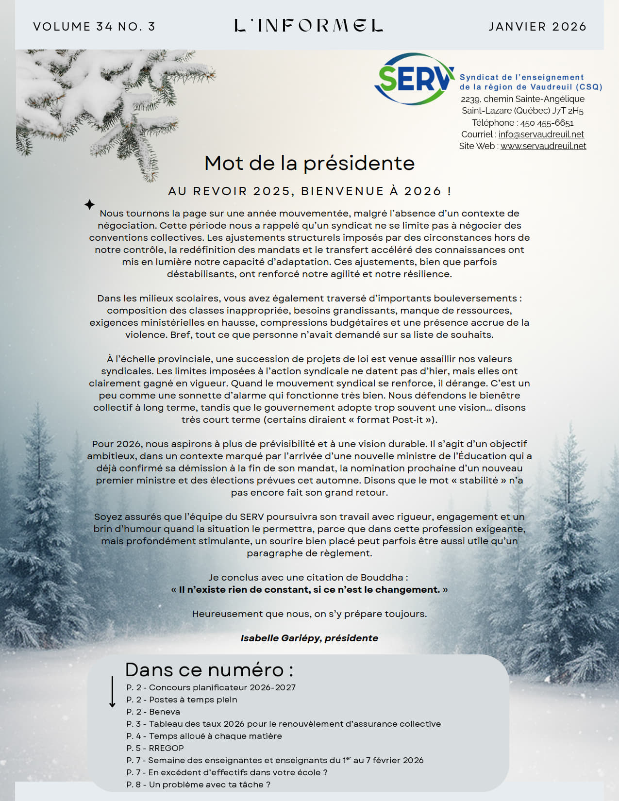 Le bureau du SERV est ouvert du lundi au vendredi de 8 h 30 à 16 h