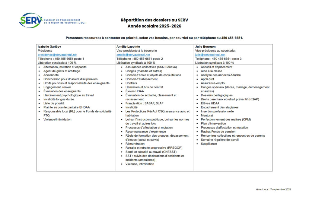 Vice-présidence au secrétariat par intérim : Julie Bourgon